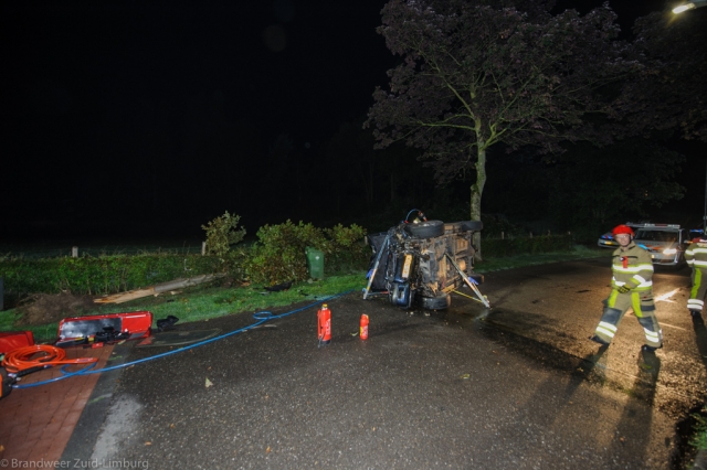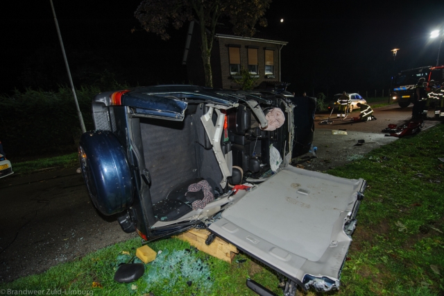 Bij aankomst van de hulpdiensten bleek dat er een eenzijdig ongeval had plaats gevonden waarbij de auto nadat deze in eerste instantie tegen een boom was gereden en vervolgens op de zijkant terecht was gekomen waarbij nog 1 slachtoffer niet zelfstandig uit het voertuig kon komen. De brandweer heeft vervolgens het dak van het voertuig open geknipt om zo voldoende ruimte te maken om het slachtoffer te bevrijden uit zijn benarde positie.