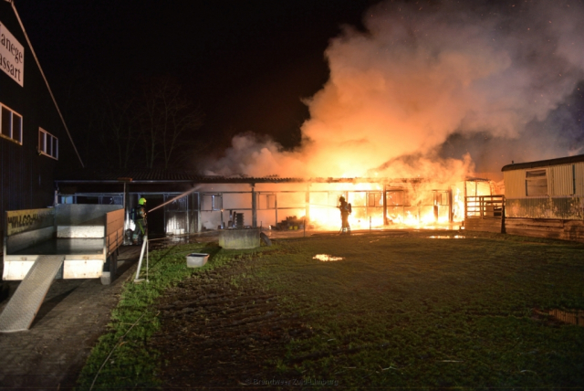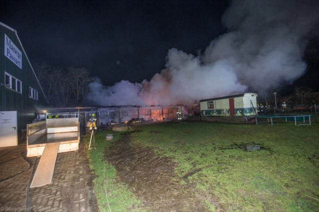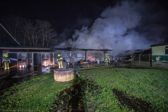 In de nacht van zaterdag op zondag werd uitgerukt voor een melding van een loods-brand aan de Passartweg te Heerlen. Bij aankomst van de hulpdiensten bleek het zich te handelen om een fikse uitslaande brand in de paardenboxen van een manege. Meteen werd ingezet op redding van de paarden. Omstanders en brandweer hebben een aantal paarden in veiligheid weten te brengen. Helaas kwam voor meerdere paarden alle hulp te laat. Een dierenarts kwam ter plaatse om de geredde paarden na te kijken.