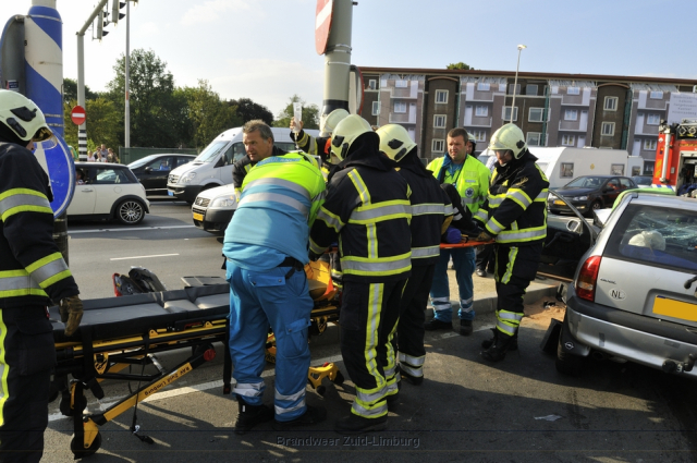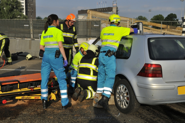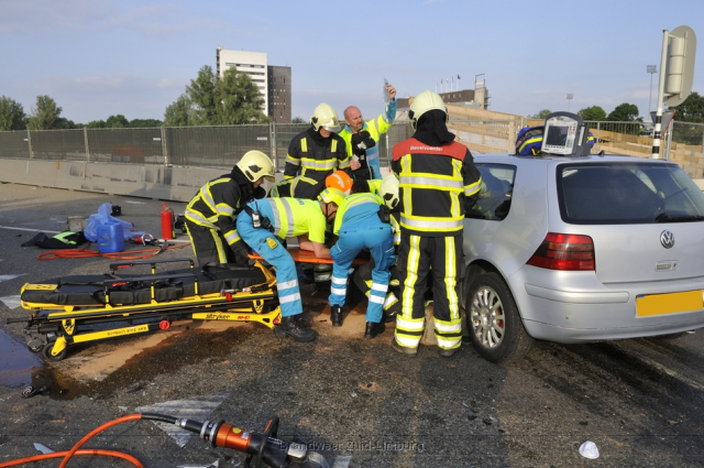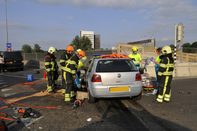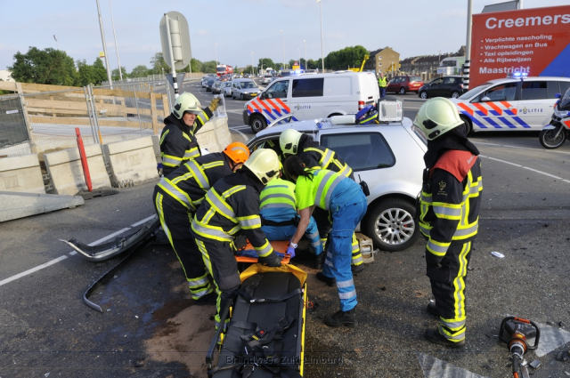 Donderdag omstreeks 18:45 uur werd uitgerukt naar de Geusseltkruising (Viaductweg / terblijterweg / A2) voor een melding van een verkeersongeval met beknelling. Bij aankomst bleken twee personenauto’s met elkaar in botsing te zijn gekomen. De inzittenden van beide voertuigen raakten gewond en moesten door de brandweer en ambulancedienst uit hun benarde positie worden bevrijd. Beide slachtoffers zijn met onbekende verwondingen naar het ziekenhuis vervoerd.