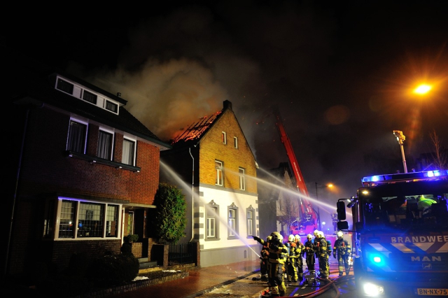 Woensdagavond rond 23.37 uur is de brandweer gealarmeerd voor een woningbrand aan de Kerkstraat te Born. De gasbrand is ontstaan in de meterkast. Bij de brand zijn van de vier bewoners, twee gewonden gevallen. Eén gewonde heeft lichte brandwonden en rook geïnhaleerd. De tweede gewonde werd door de, naar boven doorgeslagen brand, ingesloten. Zij is door de brandweer van het dak gered en had te kampen met onderkoelingsverschijnselen. Beide zijn naar het Orbis Medisch Centrum gebracht. De andere twee bewoners zijn zelfstandig uit de woning gevlucht en opgevangen bij bewoners in de buurt. De woning is onbewoonbaar. Uitbreiding naar een naastgelegen woning heeft de brandweer kunnen voorkomen.