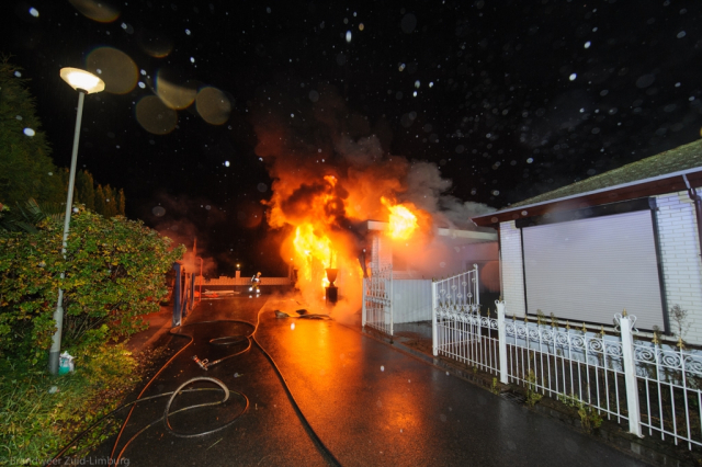 In de nacht van donderdag op vrijdag omstreeks 00:22 werd de brandweer gealarmeerd voor een brand in een woonwagen aan de Geleenbeeklaan in Geleen. Bij aankomst van de eerste eenheden was de brand in de woonwagen al in en vergevorderd stadium en werd bij de bluswerkzaamheden voorkomen dat de brand verder zou overslaan naar de overige woonwagens. Tijdens het uitbreken van de brand waren er geen personen aanwezig in de woonwagen, wel waren er 2 honden aanwezig in de woonwagen en deze zijn door de brandweer uit de brandende woonwagen gehaald en bij buurtbewoners ondergebracht.