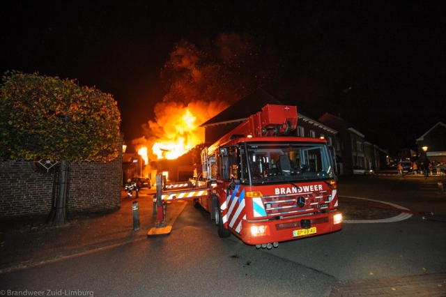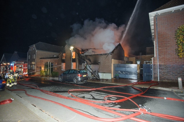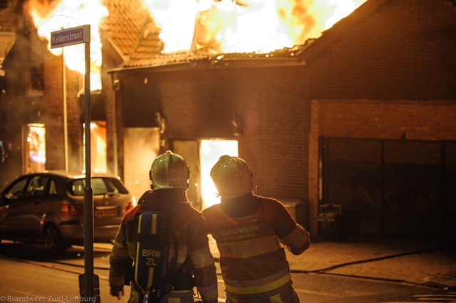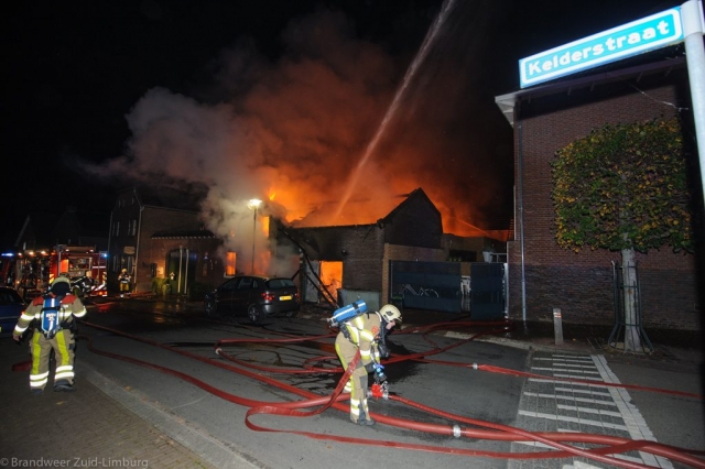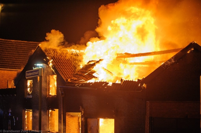 Stein – In de nacht van maandag op dinsdag werd de brandweer door omwonenden gealarmeerd voor een uitslaande woningbrand aan de Kelderstraat in Stein. In de woning zouden op dat moment nog drie personen aanwezig zijn. Bij aankomst heeft men al snel opgeschaald naar grote brand. De bewoners hebben zich via de binnenplaats en de tuin van de buren in veiligheid kunnen brengen. Het gezin is door de ambulancedienst ter plekke voor rookinhalatie behandeld. De vader is overgebracht naar het ziekenhuis. De brandweer heeft groot ingezet waardoor omliggende woningen bespaard zijn gebleven maar de getroffen woning mag als verloren worden beschouwd. De oorzaak van de brand is niet bekend, de brandweer stelt een onderzoek in.