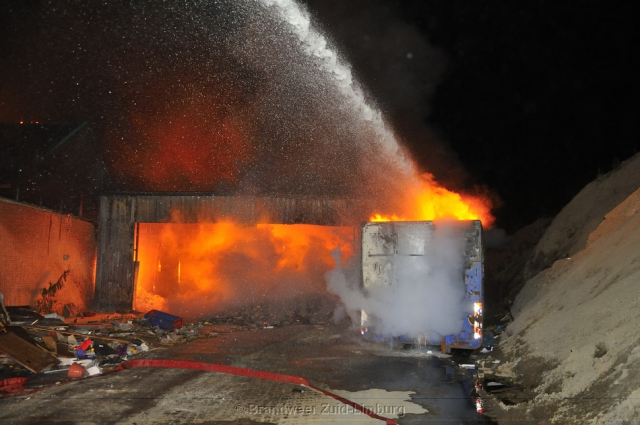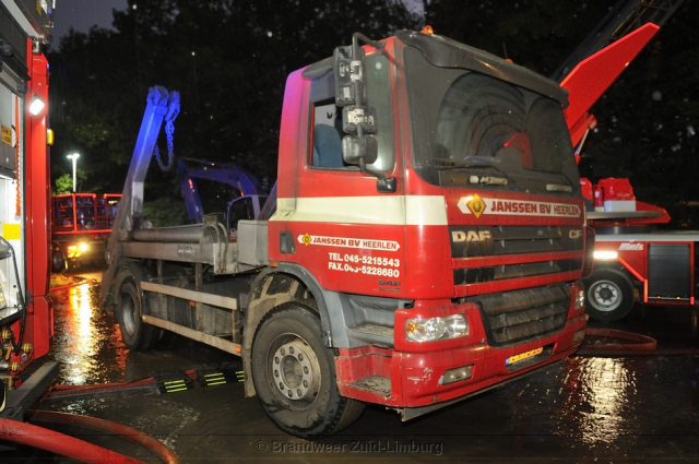 Vanochtend omstreeks 05.00 uur is er brand uitgebroken naast een loods van recycling bedrijf Janssen in Kerkrade. De brandweer is met groot materieel uitgerukt maar kon niet voorkomen dat het vuur oversloeg naar 3 loodsen. In de deze loodsen ligt ongesorteerd bouwmateriaal. De brandweer laat twee van de loodsen gecontroleerd uitbranden.Tijdens de bluswerkzaamheden is een brandweerman gewond geraakt aan zijn oog en hij is voor nader onderzoek naar het ziekenhuis gebracht.