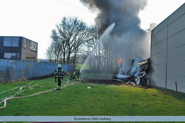 Aan de Schutterstraat in Elsloo heeft maandagmiddag een zeer grote brand gewoed waarbij een dodelijk slachtoffer te betreuren is. Op het moment van het uitbreken van de brand waren drie personen in het pand aanwezig. Twee personen konden zichzelf in veiligheid brengen. Het stoffelijk overschot van het derde slachtoffer werd tijdens de nabluswerkzaamheden gevonden. De brand brak rond 13.30 uur uit na een explosie en zorgde voor een grote rookontwikkeling die in de verre omgeving te zien was en die voor stankoverlast in Beek zorgde. Metingen van de brandweer hebben uitgewezen dat er geen gevaarlijke concentraties schadelijke stoffen zijn vrijgekomen. Het was daarom niet noodzakelijk voor omwonenden om verdere maatregelen te treffen. Het sein brand meester kon om 15.15 uur worden gegeven.Forensisch onderzoek heeft in de loop van dinsdag uitgewezen dat de oorzaak van de brand zeer waarschijnlijk in de stofafzuiginstallatie ligt. Ook de explosie is in die installatie geweest.