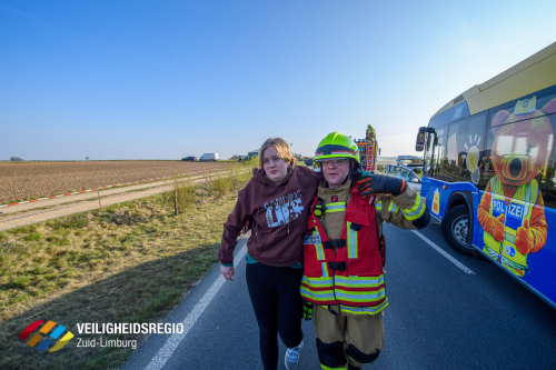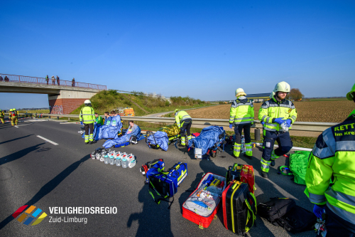 Zaterdag namen wij deel aan een grootschalige internationale rampoefening in Gangelt (Duitsland), vlak over de grens. Samen met collega’s en partners uit Duitsland en België trainden we op een realistisch en complex scenario. Het ging om een zwaar verkeersongeval tussen een vrachtwagen met gevaarlijke stoffen, een touringcar en meerdere personenwagens.