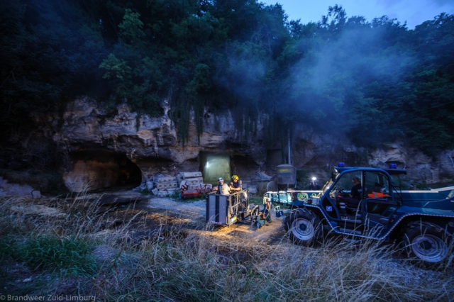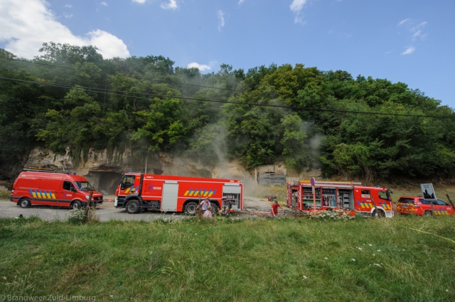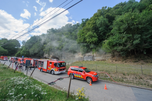 Kanne (B) – Donderdagavond omstreeks 21:10 werd er brand ontdekt in de grotten van de Cannerberg in Kanne (B). Bij aankomst van de brandweer bleek dat in de grotten een grote stapel stro lag opgeslagen en in brand stond en dit tot grote rookoverlast leidde in zowel het Belgische dorp Kanne als mede ook in de feestzalen van Chateau Neercanne. De brandweer besloot vanuit de ingang aan de Belgische kant een bluspoging uit te voeren om de stapel stro te kunnen blussen. Nadat zowel de Nederlandse als ook de Belgische brandweer enige tijd hebben geprobeerd om de brand te blussen bleek dat de bluswerkzaamheden gestaakt moesten worden omdat er tijdens het blussen stukken mergel omlaag vielen en het gevaar bestond dat er grotere stukken vanuit het plafond omlaag zouden vallen en hierdoor groot gevaar zou ontstaan voor de brandweermensen.
