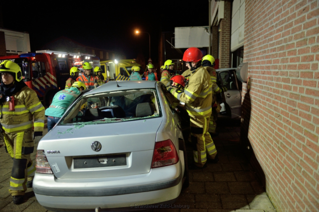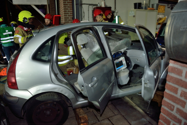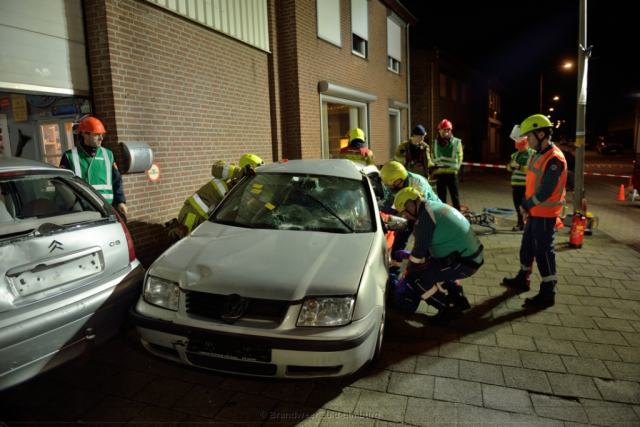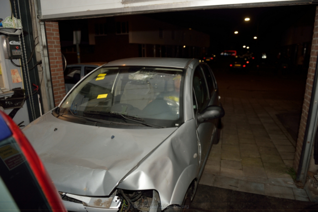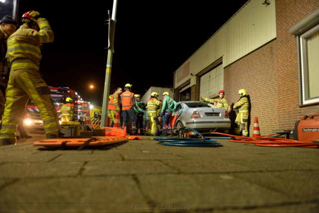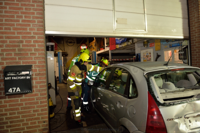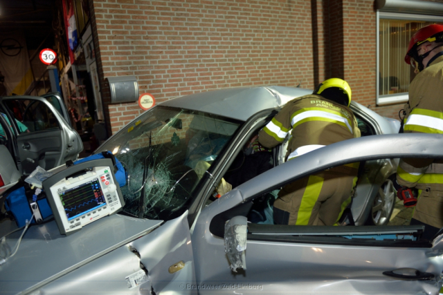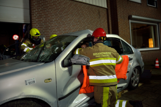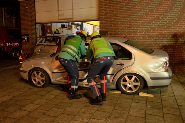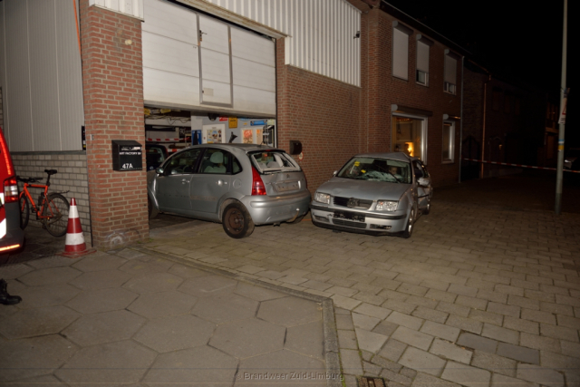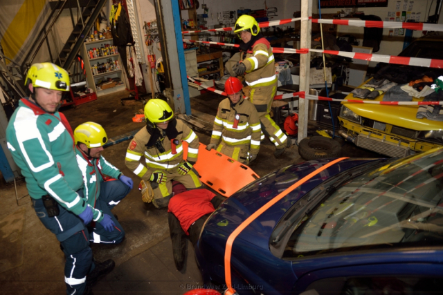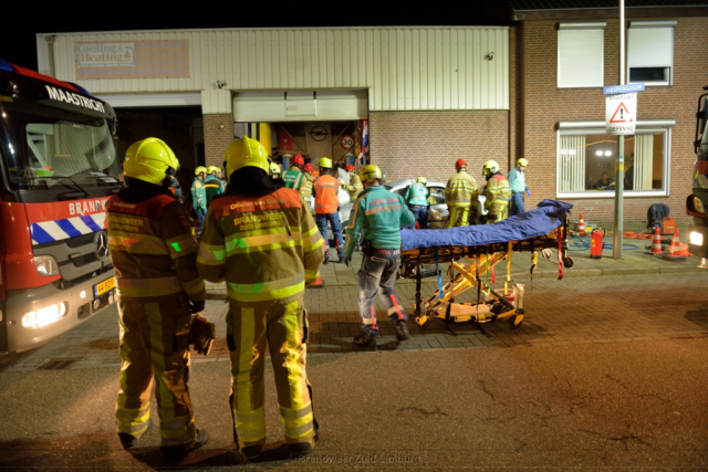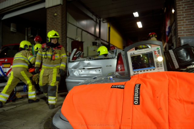 Bij aankomst bleek er sprake van een fikse aanrijding, waarbij een personenauto tegen een ander voertuig was gebotst. Dit voertuig schoof vervolgens een werkplaats van een garagebedrijf binnen, en raakte daarbij een voertuig dat in onderhoud was bij het garagebedrijf. De medewerker kwam hierbij vast te zitten onder het voertuig. In totaal raakten 3 personen bekneld. De brandweer is samen met de ambulancedienst een uur bezig geweest om alle slachtoffers uit hun benarde positie te bevrijden.