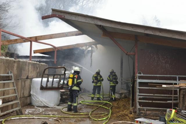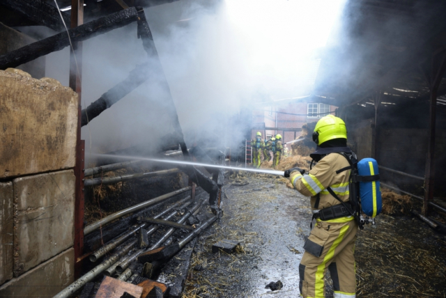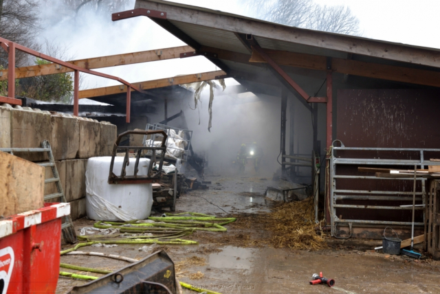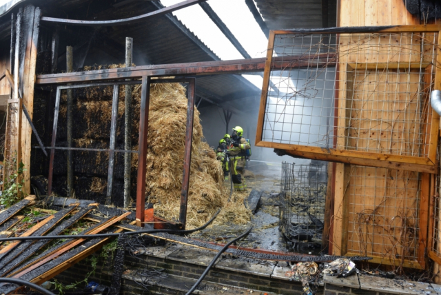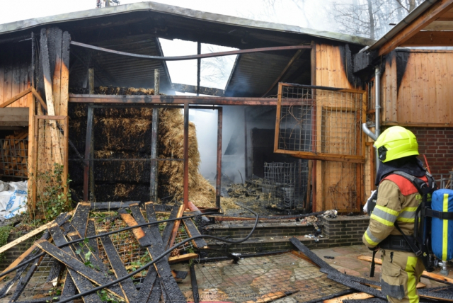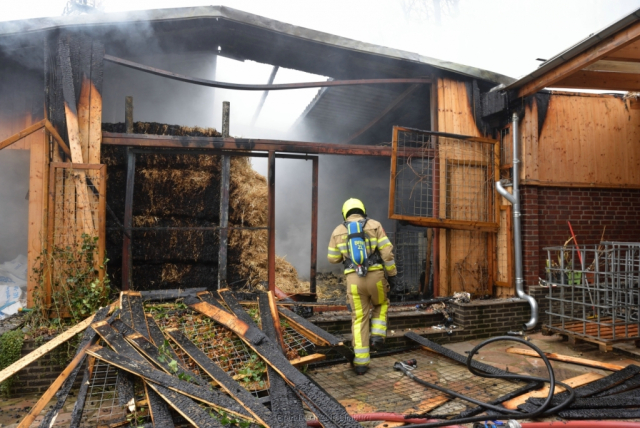 De brandweer kon voorkomen dat het vuur oversloeg naar de woning maar de stal kan als verloren worden beschouwd.