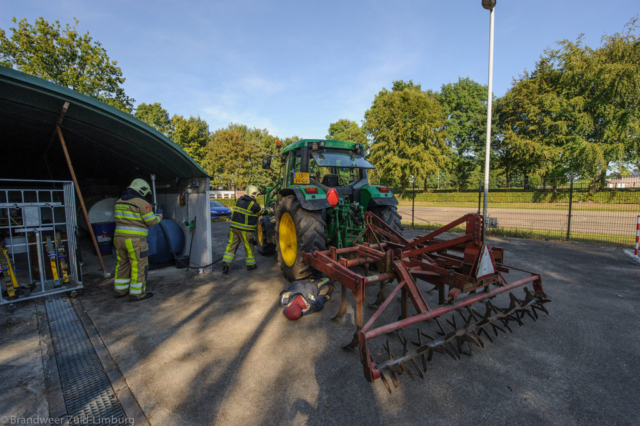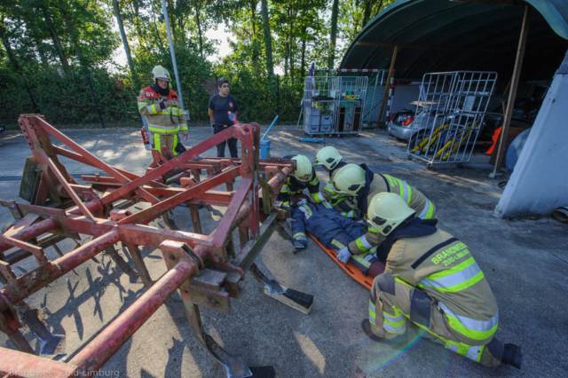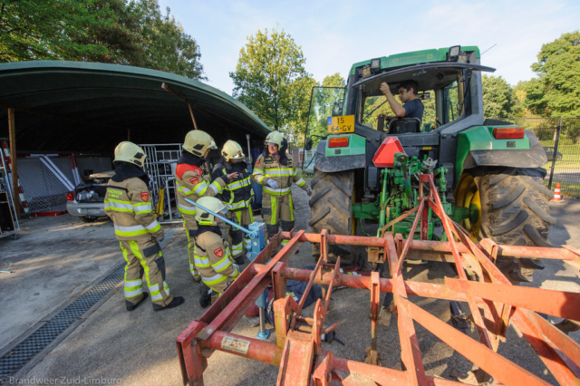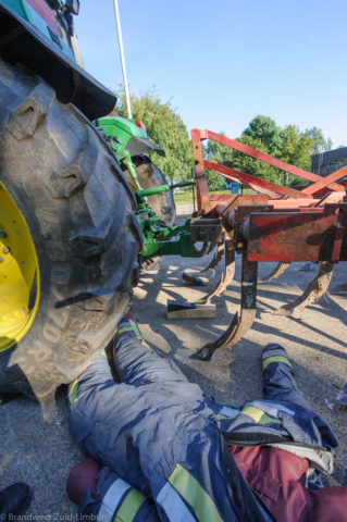 Bij de kazerne Mechelen werd op het aldaar gelegen oefenterrein een hulpverleningsoefening  gehouden waarbij een boer tijdens het manoeuvreren met zijn tractor op een gegeven moment een medewerker van zijn bedrijf onder de tractor en de aangekoppelde machine liggen, Voor de brandweermensen de taak om het slachtoffer op een veilige manier onder het landbouwvoertuig te halen.
