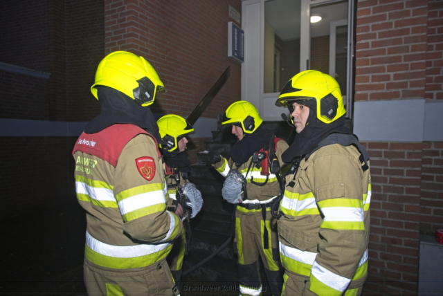 Bij aankomst van de hulpdiensten was er kort sprake van een uitslaande brand. Gezien de complexibiliteit van het object (meerdere bewoners en bouwlagen) werd opgeschaald naar grote brand. De vuurhaard was echter snel onder controle.