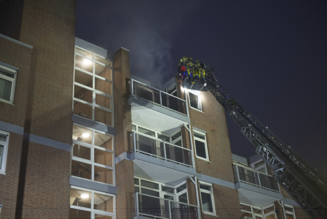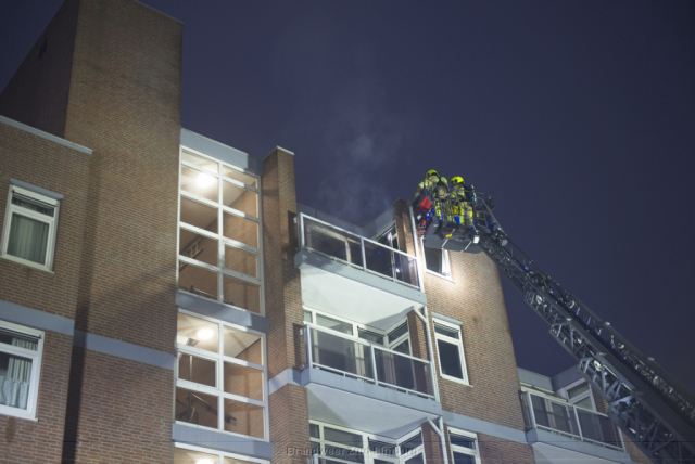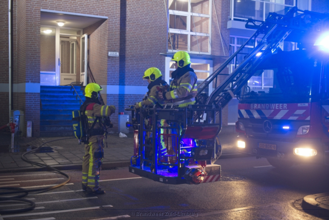 Donderdag om 17:07 uur werd de brandweer gealarmeerd voor een binnenbrand op de bovenste etage van een appartementencomplex aan de Paralelweg te Heerlen.