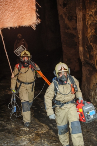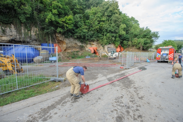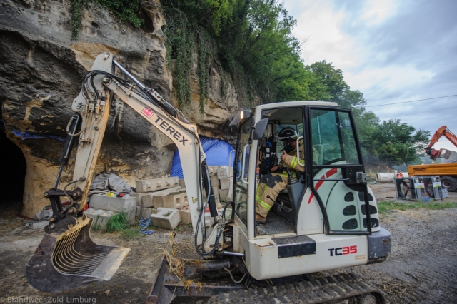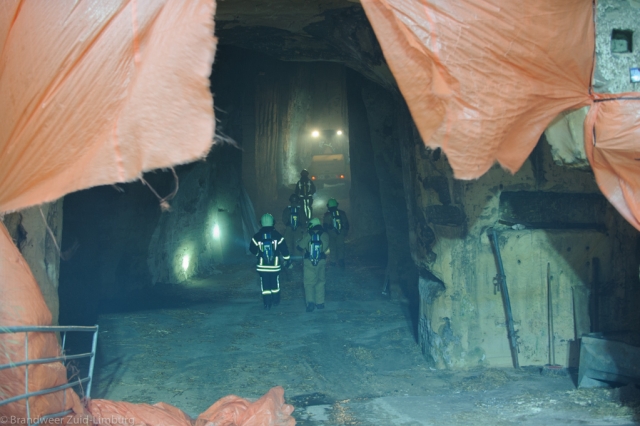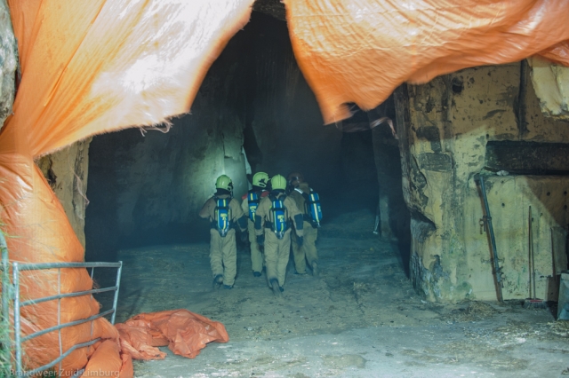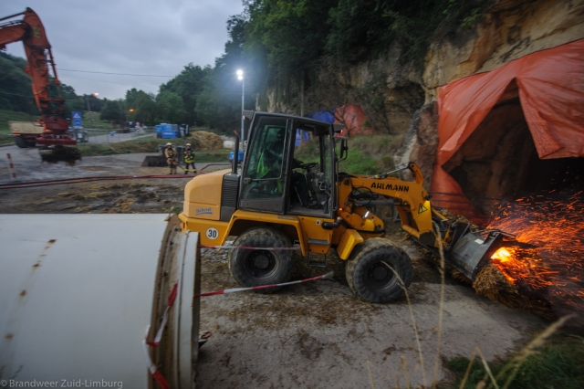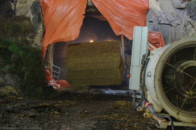 Vanochtend is de brandweer begonnen met het transporteren van het hooi en stro uit de grotten van de Cannerberg. Tijdens de inzet inspecteert de geoloog voortdurend de staat van de grot en voor de hulpverleners zijn diverse voorzorgsmaatregelen getroffen. Dit om een zo veilig mogelijke werksituatie te creëren. Tot dusver verloopt de actie voorspoedig.