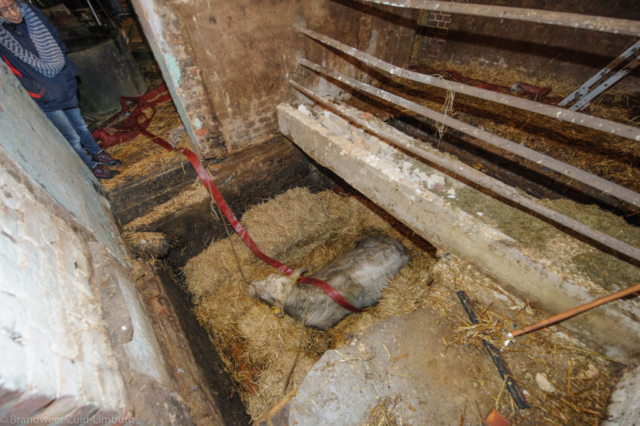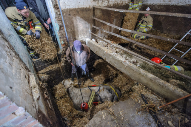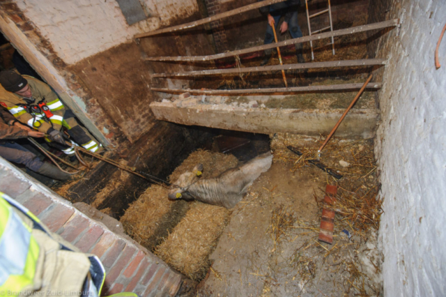 In eerste instantie werd het water dat in de put stond weggepompt om vervolgens door middel van voldoende pakken stro in de put te leggen zodat het dier op eigen kracht kon proberen uit de put te komen, de koe was echter zo vermoeid geraakt door alle angst dat deze niet meer op eigen kracht uit de put kon kruipen.